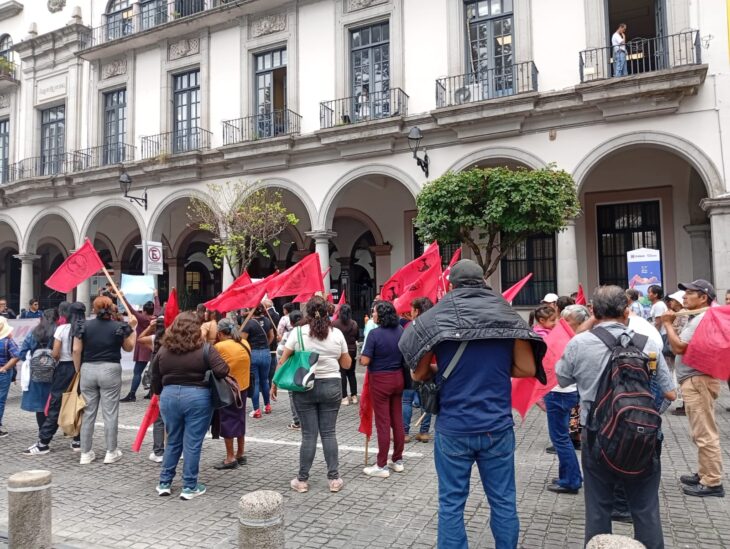 Marchan antorchistas y bloquean la avenida Enríquez, frente a palacio municipal