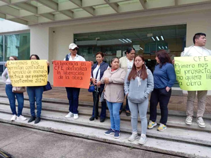 Vecinos de El Castillo se manifiestan en las oficinas de CFE en Xalapa