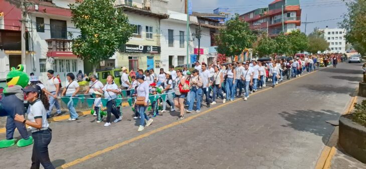 En el desfile participaron docentes, alumnos, personal que ha laborado en el plantel en distintas etapas, así como invitados del público en general y la Marching Band Cardenales, quienes acompañaron el recorrido.