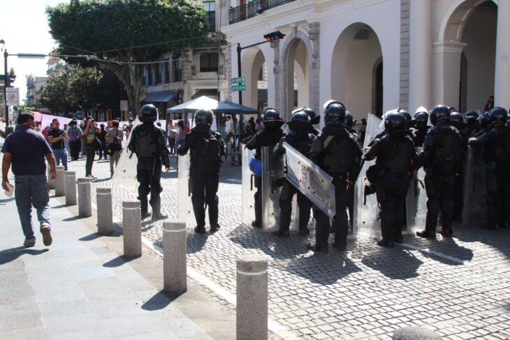 Maestros jubilados de distintos municipios del estado fueron desalojados por granaderos de la Secretaría de Seguridad Pública mientras exigían el pago del seguro institucional, los docentes habían montado un plantón en la calle Enríquez desde el jueves pasado para demandar una respuesta definitiva a sus peticiones, ya que llevan más de 15 años luchando por el pago de esta prestación.