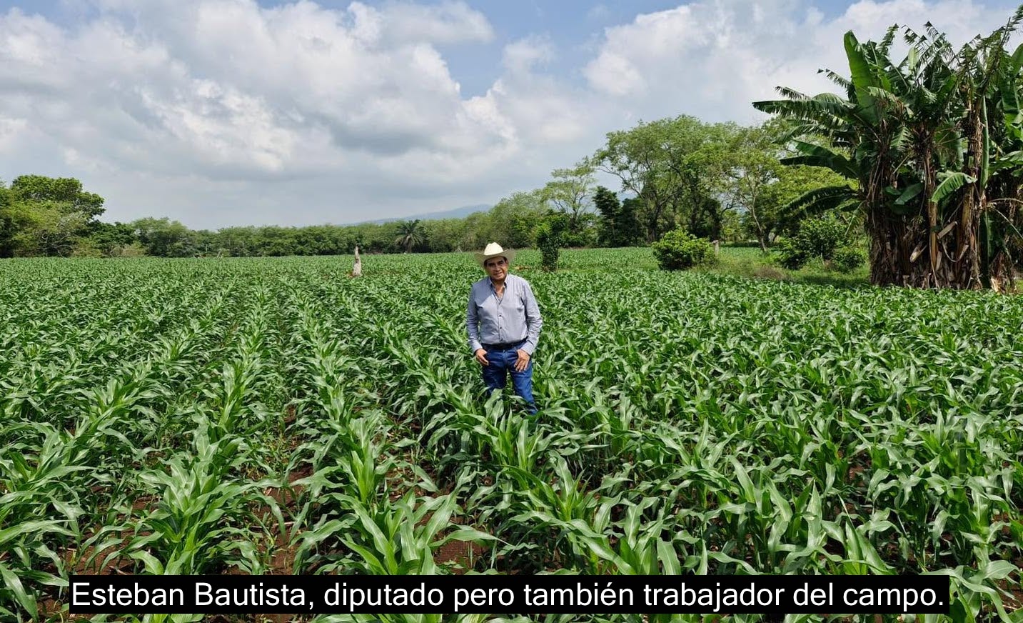 El diputado local y presidente de la Junta de Coordinación Política del Congreso local acompañó su texto con un video donde se le ve conducir un pequeño tractor y fotografías en medio de un maizal verde, en plena producción, que tiene en Tatahuicapan, su municipio, del que ha sido alcalde.