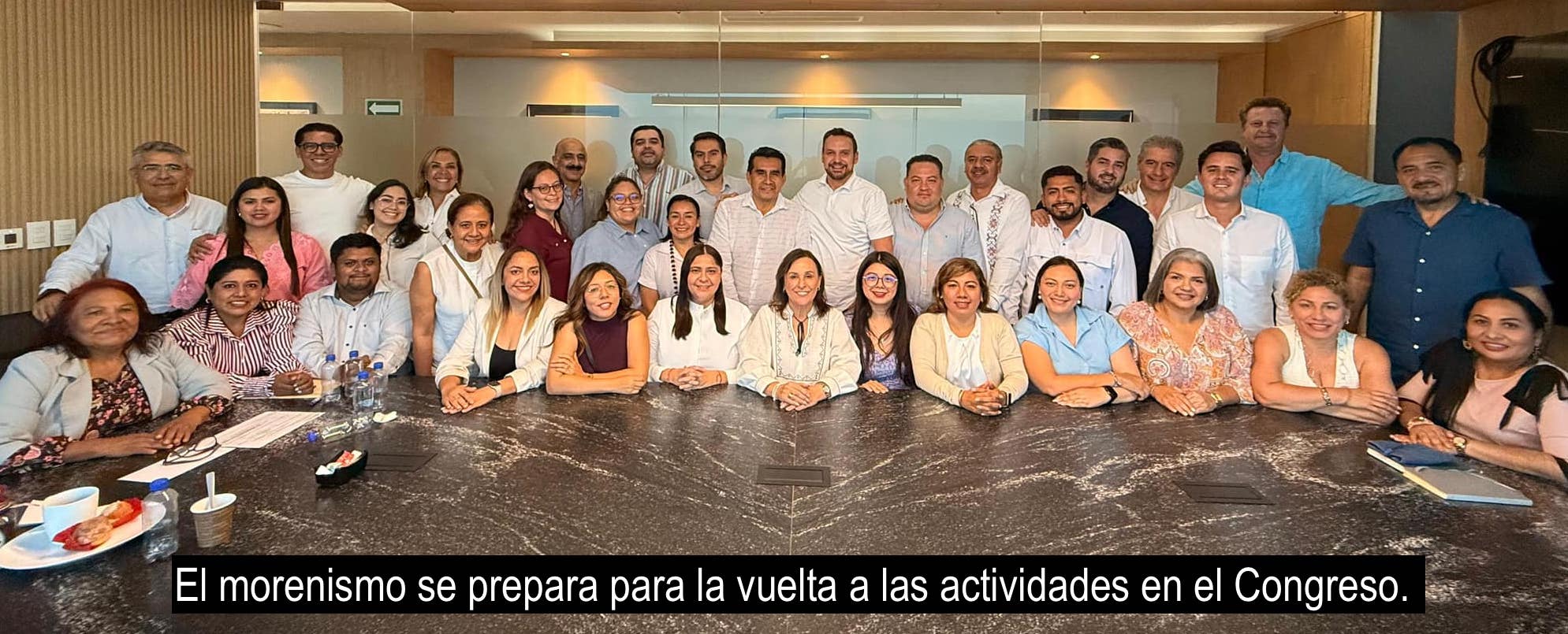 A dos semanas de inicio del segundo año de sesiones ordinarias, la diputación local de Morena, encabezada por su pastor, diputado Esteban Bautista Hernández, se reunió ayer con su lideresa la gobernadora Rocío Nahle, sesión que el también presidente de la Jucopo calificó de “productiva”.