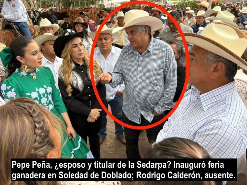 ¿Se aprovechó de su ausencia su esposo José Luis Pepe Peña Peña para soltarse? Porque resulta que el esposo consorte de la gobernadora Rocío Nahle inauguró la feria ganadera de Soledad de Doblado no se sabe en calidad de qué, ya que no tiene algún nombramiento oficial y quien debió hacerlo fue el secretario de Desarrollo Agropecuario, Rural y Pesca (SEDARPA), Rodrigo Calderón Salas, quien ni siquiera estuvo presente. ¡Ah, pero según Pepe y su esposa la gobernadora, trabaja de gratis, lo hace a título honorario porque no cobra un solo quinto! Eso dicen.
