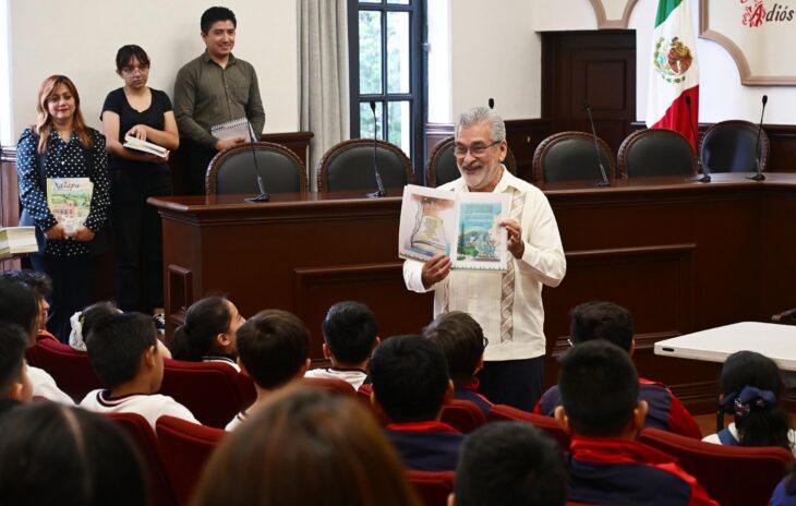 Finalmente, el Edil obsequió a los alumnos un ejemplar del libro “Xalapa, un vuelo a su pasado”, obra editada por el Ayuntamiento, donde a través de diversos personajes se realiza un recorrido por los cinco siglos de historia de la ciudad, para difundir los sucesos culturales, históricos y sociales más relevantes del municipio, con ilustraciones y un lenguaje adecuado a la niñez.